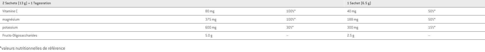- 1 sachet = 50% de la ration journalière recommandée en magnésium,